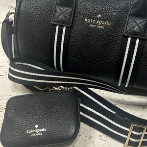 NWT Kate Spade Black Leather Satchel Duffle Crossbody Bag w/ Coin Pouch