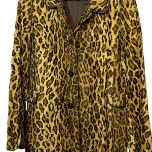 Stylish leopard print faux fur trench coat for women. Perfect for adding a bold statement to your wardrobe.