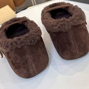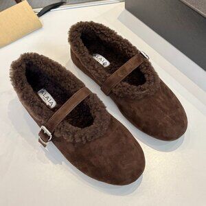 Alaïa Shearling-Lined Mary Jane Flats – Brown Suede