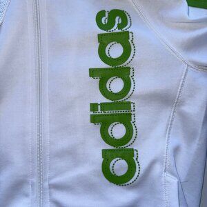 Adidas Originals Track Jacket Womens M White Green Full Zip 3-Stripes Logo Y2K