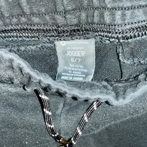 Comfortable joggers for active kids. Perfect for everyday wear. Soft fabric with a relaxed fit. Some wear in knees on 1 black pair 1 a snag on the back of the grey pair (photographed). Great play pants