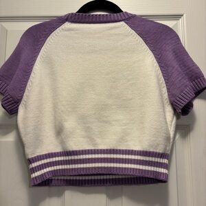ROMWE Purple and White Care Bear Pullover Cropped Shortsleeved Sweater