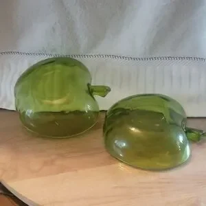 Hazel-Atlas Green Glass Apple-Shaped Bowls. Set of 2. Minimal Flaws.