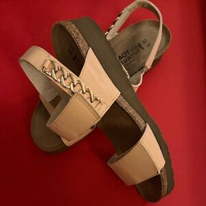 Naot Eliana Beige Strappy Sandals with Chain Accent