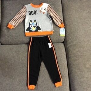 Brand new Toddler Boys Bluey Bingo Halloween Fleece Sweatshirt and Bottom Set Grey Orange 4T