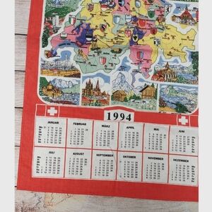 Red Switzerland Calendar Tea Towel 1994 Swiss Map Tea Towel