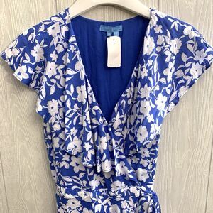 Draper James RSVP Blue Floral Short Sleeve Wrap Dress Size 4 NWT