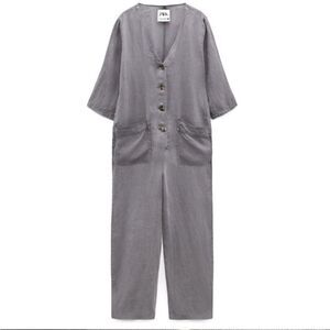 Zara Gray Lillian Linen Jumpsuit | Size Small
