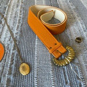 Orange Fabric Cloth & Gold Large Buckle Belt. Size 14T (Size X-Small). NWT. True Vintage Retro.