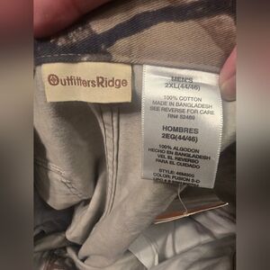 NWT Outfitters Ridge 2XL Camouflage Hunting Pants Fusion 3D. 44/46 and 32" inseam. Camouflage hunting pants with orange leaf accents. Perfect for outdoor adventures.