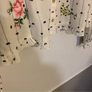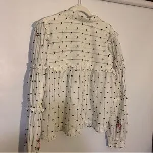 Anthropologie’s PILCRO Embroidered Floral Polka Dot Blouse - White & Pink Sz XL