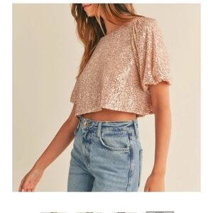 NWT GOLD EMBELLISHED SEQUINED CROP TOP OPEN TIE BACK LARGE
