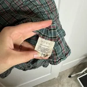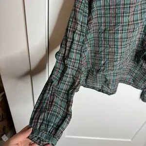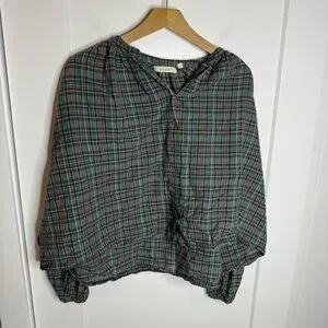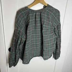 DOEN The Jane Blouse Pond Promenade Plaid 100% Cotton Button Front Blouse Small