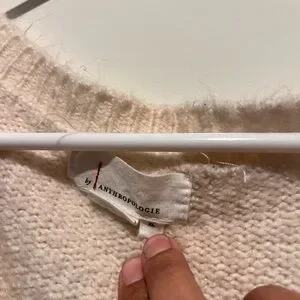 Anthropologie Women’s Cream/Peach Oversized Bell Sleeve Knit V Neck Sweater XL