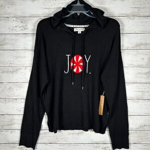 Rae Dunn Embroidered JOY Peppermint Mint Holiday Black Hoodie Sweater L NWT $84