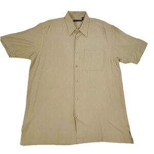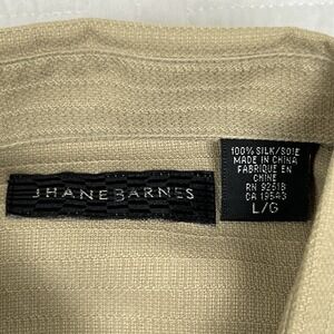 The JHANE BARNES 100% Silk Herringbone Mens Shirt in size L is a stylish and versatile piece perfect for various occasions such as parties, casual outings, or business events. Made from lightweight silk fabric in a classic beige color, this button-up shirt features a collared neckline and short sleeves, making it suitable for all seasons including summer, fall, and spring. The herringbone pattern adds a touch of texture and sophistication to the shirt, making it a timeless addition to any man's wardrobe.