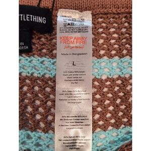 Keywords: PrettyLittleThing skirt, women's maxi skirt, crochet knit skirt, striped maxi skirt, bohemian skirt, beach skirt, summer skirt, resort wear, festival fashion, casual maxi skirt, brown and blue skirt, size L