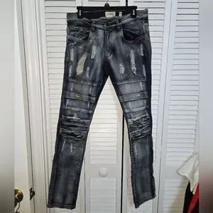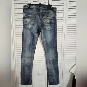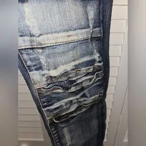 Stylish distressed jeans perfect for a casual look. Comfortable and trendy, these jeans are a must-have for any wardrobe.
