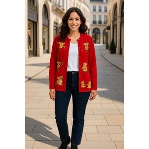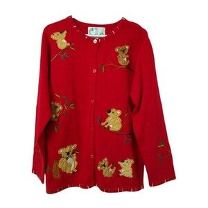 Quacker Factory Sweater Women's Medium Red Koala Bear Appliques Vintage 90s