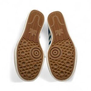The adidas Originals Nizza RF 74 men’s sneakers update a vintage-inspired silhouette with modern streetwear style. Featuring a durable turquoise canvas upper, they offer a clean, versatile look that pairs easily with casual outfits. A cushioned insole provides everyday comfort, while the vulcanized rubber outsole delivers reliable grip and flexibility. Finished with subtle adidas branding, these sneakers bring classic heritage design into today’s wardrobe.