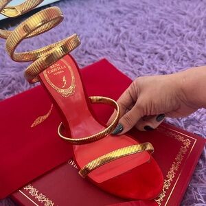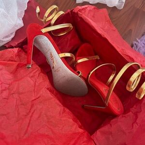 Rene Caovilla Red and Gold Strappy Heels