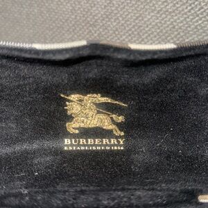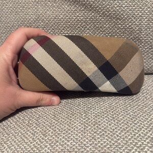 Authentic Burberry hard glasses case this could be for glasses or sunglasses. It does show some dirtiness on the exterior and usage. Please make sure you look at the video and the pictures interior has a beautiful Burberry logo and imprinted made in Italy item comes from a smoke free home.