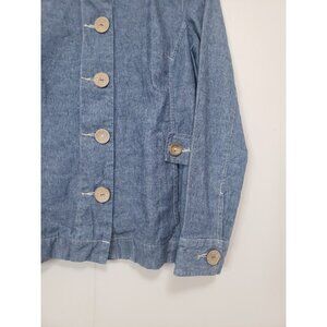 Koret City Blues Womens Petite PS Denim Jacket Chambray Wood Button Band Collar