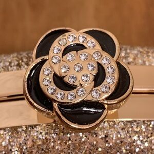 Features: Removable crossbody strap, Gold hardware, Sparkle Embellished