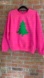 Cozy and stylish pink sweater featuring a vibrant green tree design. Perfect for adding a pop of color to your wardrobe.
