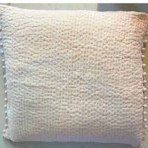 A PAIR of (gently used but lovingly taken care of) light pink quilted Serena & Lily Euro shams. With pom poms on 2 sides and a slight silver filigree running through for just a little bit of sparkle. Perfect for a little girl's bedroom or just to add a little bit of femininity to a master bedroom.