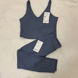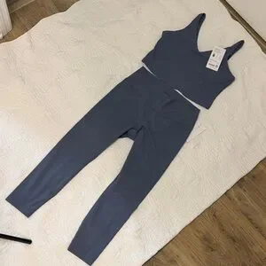 Athleta Women's Slate Blue crop bra and 7/8 tights set