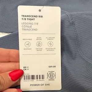Athleta Transcend Rib Blue Leggings High Waist Performance Fit