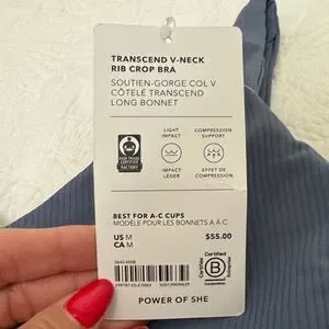 Athleta Transcend V-neck Blue Ribbed Crop Bra