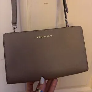 Elegant beige crossbody by Michael Kors. Ideal for versatile styling.