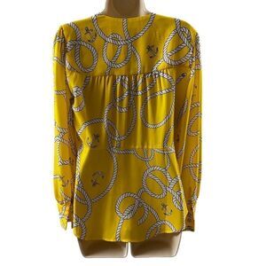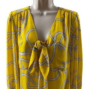 Cabi ~ Womens Nautical Yellow Sheer Blouse ~ side zip closure ~ tie front ~ sz S