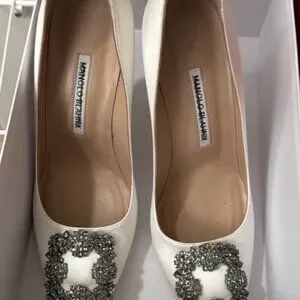 Manolo blahnik White Satin Jewel Buckle Pumps White Satin Jewel Buckle Pump