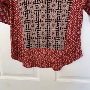 Lucky Brand Women's Shirt Top Size Small Black Tan Red 1/2 Sleeve Crochet