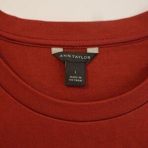 Ann Taylor Large Red Crew Neck 2 Material Sheer Bottom Blouse