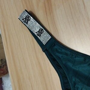 Victoria's Secret Dark Green Thong Panty with Embellished Straps Medium ๐