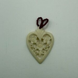 Vintage Elegant Cream Heart Floral Carved Bone? Pendant