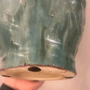 Beautiful vase around 18 inches tall. Has beautiful glaze. Some shots of gold and navy blue. Gorgeous creation! I have lots of experience with shipping fragile items. This piece reminds me of a McCoy!