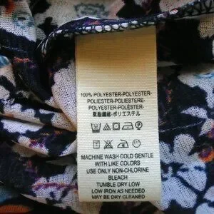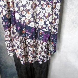 Free People has to be one of my favorite brands mostly because I love fabulous sleeves and this company puts them out in spades. This top is a great example. The long sleeves are tapered and have long cuffs in contrasting floral. It is a size small! it does not look like a small and it has a lot of room but you must pay attention to the sleeve measurements, OK? (actually, PLEASE note ALL the measurements!) It is a sheer polyester mesh with mixed florals, pretty much a year round fashion item. Deep V neck. To belt or not to belt? Layered, with Big ruffle peplum on the bottom, Hem is raw. The fit is very unique on this. It has no flaws.