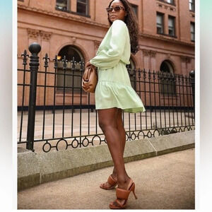 The Drop Women's Smoke Green Long Sleeve V-Neck Mini Dress size Large