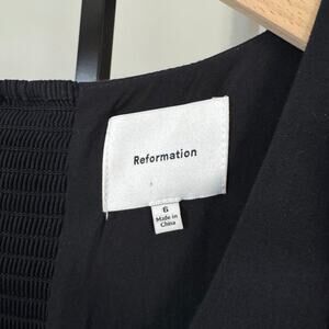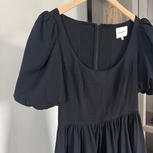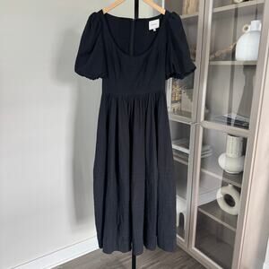 Reformation Black Scoop Neck Puff Sleeve Tiered Maxi Dress 6 Organic Cotton