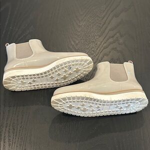 Stylish grey boots with a glossy finish. Durable and perfect for winter weather. Comfortable fit with a modern design. The shoe is not marked 7 1/2, size label has wore off on the inside label.