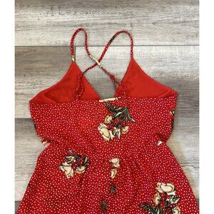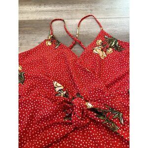 Socialite Wrap Jumpsuit w/ leg slits NWT Sz Large, Red White Polka Dot Floral. Snap