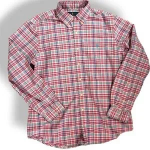 Ralph Lauren Polo Men's Long Sleeve Button Front Shirt Size L Pink Muliti Plaid