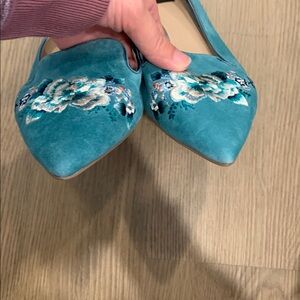 NEW WHBM Ava embroidered ballet flats suede pointy toes shoes floral casual 9.5