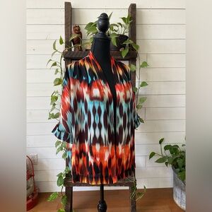 A new day: Vibrant Multicolor Open Front Kimono with Cuffed Sleeves