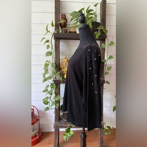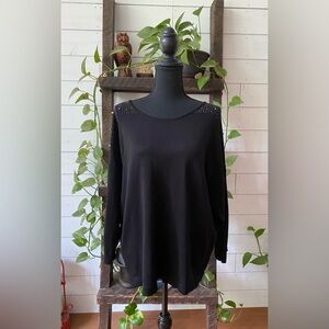 Calvin Klein: Black Relaxed Embellished Sweater Blouse with Mid Sleeves